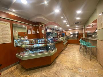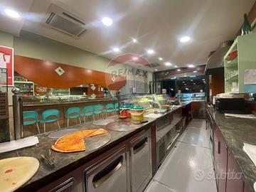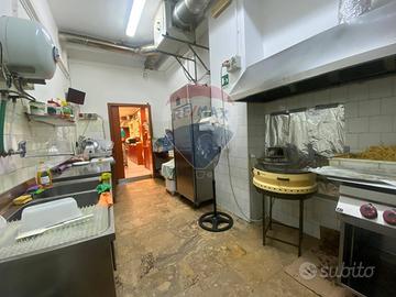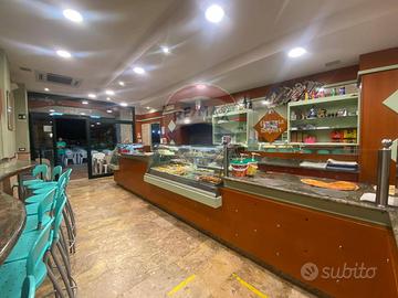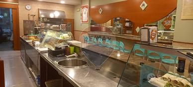 La zona antistante ossia quella destinata alla vendita è composta da: tavola calda rosticceria, frigo vetrina panini, frigo banco bevande, forno moretti ad una camera, cassettiera in acciaio per massa, frigo per conservazione massa, piastra per panini, gira wurstel, microonde, stendi pizza ,3 banchi lavorazione, 2 friggitrici, e 2 impastatrici.