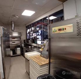 ATTREZZATURE: Forno a due camere "POLIN", planetaria da 40L "RESTO ITALIA", 2 Frigoriferi negativi "AFINOX/ITALREFR", congelatore "FORCAR", un pozzetto, stendi pizza "PRISMAFOOD", carrello porta farina, 100 telai, trita mozzarella acciaio "KOREL", bilancia professionale, friggitrice, forno a micro onde, affettatrice, monta panna, frullatore.