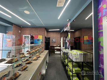 In vendita locale commerciale completamente ristrutturato e arredato, disposto su due livelli (piano terra e seminterrato) per una superficie complessiva di circa 90 mq.