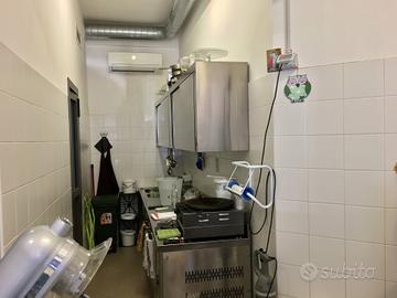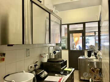 Il locale, situato in un punto di grande traffico veicolare e intenso passaggio a piedi, è stato completamente ristrutturato con gli impianti a norma certificati e si sviluppa su una superficie di 40 mq circa. E' dotato di aria condizionata a pompa di calore ed è suddiviso in: spazio vendita, ampio laboratorio, magazzino, spogliatoio, ripostiglio, bagno con finestra ed antibagno; completo di tutte le attrezzature e stigliature di prima scelta necessarie per la produzione di Gelati