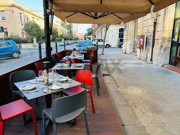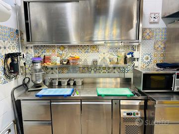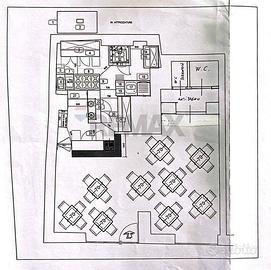 L'immobile si presenta in buone condizioni ed è composto da una ampia sala interna che può ospitare 36 persone, una veranda esterna con 20 posti e una cucina attrezzata di: cucina 6 fuochi, friggitrice elettrica, cuocipasta a gas, cappa professionale, abbattitore, forno magistar di fascia alta, lavastoviglie, frigoriferi, vetrinetta vini, piani e pensili in acciaio inox e molto altro, le condizioni dell'attrezzatura sono pari al nuovo. Gli ambienti sono climatizzati da n. 2 condizionatori da 24000 BTU cadauno, completano limmobile due bagni e una zona lavorazione nel soppalco.