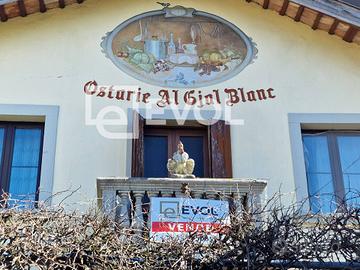 La trattoria è nota per la presenza dell'affresco sulla facciata principale con la scritta "Osterie Al Gjal Blanc" e la statua del Gallo Bianco, a impreziosire ulteriormente l' ingresso troviamo un accogliente pergolato di vite americana che crea una copertura naturare dove godersi un piacevole ristoro.