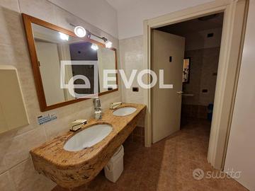A completare il piano terra è presente una cucina professionale completamente attrezzata, un ripostiglio e i servizi igienici completamente rinnovati composti da un antibagno con doppio lavabo e 2 wc, di cui uno dedicato ai disabili.