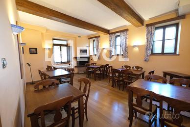 Esternamente sotto il porticato è possibile accogliere fino a 16 clienti, mentre all'interno del locale troviamo due grandi sale, una adibita a bar con una capienza di 12 coperti e una adibita a sala pranzo con una capienza di 30 coperti, nella quale è presente un caminetto a legna. Le travi a vista che rendono l'atmosfera calda e accogliente. I tavoli e le sedie presenti sono realizzati artigianalmente in legno.