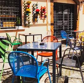 Locale completamente arredato, sia all'interno che all'esterno, completo di tavoli, sedie e sgabelli.