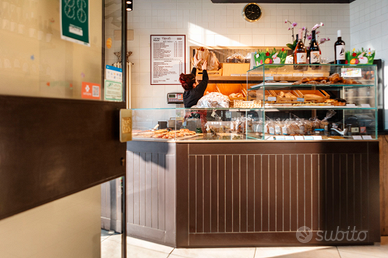 Vendesi panetteria con piccolo laboratorio di produzione, impianto cappe a carboni attivi funzionanti, impianto elettrico rifatto da zero, forno elettrico per pizza a due bocche, forno per gastronomia, bancone da lavoro con frigoriferi integrati, freezer congelatore, frigorifero bevande in area vendita, bancone in area vendita con frigorifero per pasticceria/gastronomia da esposizione compreso di scoparti per scorta merce e carta da vendita, espositore pane, espositore merce (marmellate, salse, vino, taralli ecc) più bagno, impianto area condizionata sia in laboratorio che in aria vendita