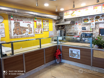 Situata in zona centrale, di fronte all'entrata del parco, vicino alle scuole medie, banca ed uffici, proponiamo in vendita un'attività commerciale di pizzeria e tavola calda, presente da circa 15 anni sul territorio con consolidata clientela. Il locale dotato di una vetrina su strada, si presenta in ottime condizioni generali e si sviluppa su una metratura di mq 200 suddivisa su due livelli così composto: Al piano terra, ampia sala con una capienza di 45 posti, dotata di aria condizionata, con bancone e macchina per kebab, un bagno per la clientela, ampia cucina attrezzata con impianto di aspirazione, attrezzatura forno elettrico per pizza, un bagno e antibagno. Al piano S1 è presente un'ampia sala adibita a feste di compleanno ed eventi. Completa la proprietà una piccola corte esterna di pertinenza con pedana in legno e gazebo.