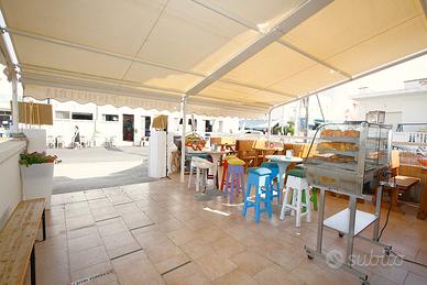o Spazio esterno attrezzato: La presenza di un'area esterna con tavoli, sedie e tende parasole consente ai clienti di godere dei pasti all'aperto, un vantaggio particolarmente apprezzato durante i mesi estivi.