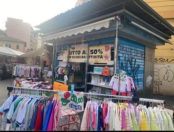 Attività commerciale con licenza non alimentare ma possibilità di ampliarla anche ad alimentare, settore abbigliamento bambini in attività da oltre 40 anni mercato Alberone Roma. Box fisso dotato di scaffalature e carrelli