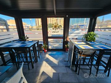 Locale moderno e ben curato, con pergotenda esterna, cucina professionale, e ambienti accoglienti già arredati e funzionanti.