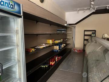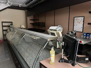 Vendesi attrezzatura per supermercati/market/macelleria/salumeria. Solo lotto completo non divisibile, il lotto comprende l'arredo e il bancone con vetrine frigo.