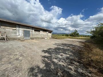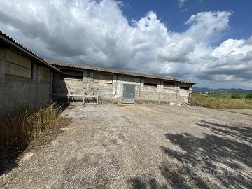 La proprietà è composta da due terreni agricoli di 3 ettari complessivi ca e da due capannoni di cui uno da 300mq utilizzato per il bestiame e l'altro di 200mq che è stato rifinito in un open space pianellato con camino e doppio bagno principalmente destinato a sala feste.