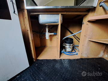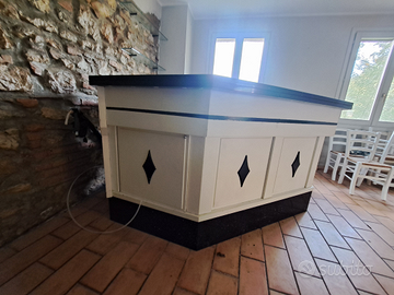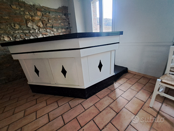 ha una lastra in marmo nera come banco e posto per sotto + cassetti esterni