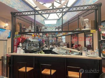 Il chiosco in questione offre una superficie totale di 35 mq, i quali possono ospitare fino venti coperti. Questo Bar, situato all'interno del centro suddetto, gode della presenza di bagni e della possibilità di usufruire di un comodo magazzino.