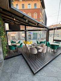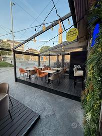 Area esterna: Una delle caratteristiche distintive di questo bar è la splendida veranda esterna, perfetta per godere delle belle giornate. Recentemente rinnovata con tende di ultima generazione che offrono un'ottima protezione dal sole e dalle intemperie, la veranda è ideale per ospitare i clienti in tutte le stagioni. Le tende sono state appena sostituite e le relative fatture sono disponibili, così come tutte le certificazioni per attestare la qualità e la funzionalità.