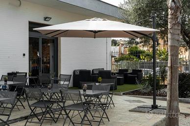 Il locale ad ANGOLO si sviluppa su circa 100 mq con 3 vetrine, 1 ingresso ed uno scarico merci, è finemente ristrutturato e gode di un'ampia visibilità grazie al suo esterno di altrettanti 100 mq che ospita una 40ina di posti a sedere e che NON PAGA OCCUPAZIONE SUOLO PUBBLICO.