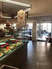 BAR CAFFETTERIA MERCATO mq. 70 + 60 dehors, cucina, impianti certificati, posizione forte passaggio, fronte mercato, vicinanza banche, scuole, ideale 2 addetti, ottimo incasso giornaliero, 8 Kg. caffè settimana, 60 brioches al giorno, 20 coperti al giorno, affitto minimo, spese irrisorie, cedesi con anticipo + dilazioni dirette, possibilità finanziamento.