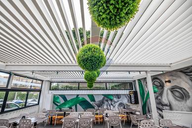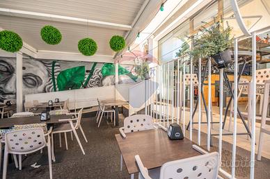 Locale di circa 50 mq interni, con sala principale arredata e funzionale, e spazio esterno di circa 30 mq coperto da tenda motorizzata Dirello, ideale per eventi estivi e invernali.