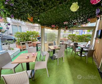 L'attività vanta un significativo valore aggiunto rappresentato da un'area esterna privata attrezzata con un ampio gazebo verandato, oltre un terrazzino che circonda l i locali interni offrendo una capacità di circa 45/50 posti a sedere all'aperto in totale . L'interno include una sala da The climatizzata con una capacità di 30 posti ideale per feste e piccoli eventi privati .