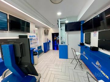 sportivo con prenotatori ,8 canali Virtual e cassa self per poter giocare in autonomia è un " gabbiotto / ufficio " di circa 4 metri quadrati , il corner e' provvisto naturalmente di regolare licenza TULPS 88 che autorizza gioco al banco inoltre e' presente terminale dal quale sono possibili pagamento utenze e servizi , Mav , rav , f24 , bollettini ecc.