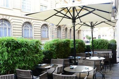 Lo spazio interno è ben distribuito e accogliente, adatto a garantire un servizio efficiente anche con clientela seduta. All'esterno, il plateatico rappresenta un importante valore aggiunto, con capacità fino a 60 posti, ideale per il servizio all'aperto e per lo svolgimento di eventi con musica dal vivo, in un contesto di forte visibilità e passaggio.