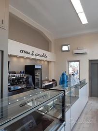 Il bar è suddiviso su due livelli: al piano terra troviamo un locale commerciale adibito alla somministrazione e vendita di alimenti e bevande. Caffetteria e gelateria sono i protagonisti di un menù molto articolato su quello che il bar può offrire.
