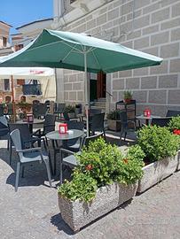 ? Punto di forza: ampio e vivace dehor esterno su piazza, arredato con tavoli, sedie e ombrelloni, ideale per colazioni, aperitivi e ritrovi serali, con ottima affluenza locale e turistica (come visibile in foto).