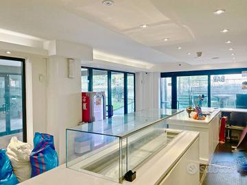 E' composto da locali spaziosi, una cucina un bagno e quattro ampie vetrine che permettono una grande visibilità sull'affollata strada principale e accogliere i clienti in un ambiente luminoso e confortevole.