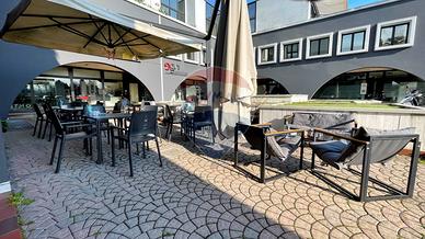 Il locale è composto da una zona bar con bancone attrezzato, 18 posti interni, 40 posti esterni, magazzino per la gestione delle scorte, doppio wc e cucina attrezzata senza cappa.