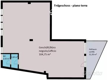 via Milano: In vendita abbiamo questo locale commerciale al piano terra con una superficie netta di 110 m². Un piccolo cortile davanti al negozio ompleta il tutto. L'immobile può essere consegnato da subito.