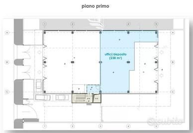 piano primo: 238,00 m² (atrio, uffici/deposito)
