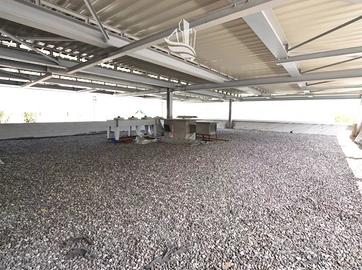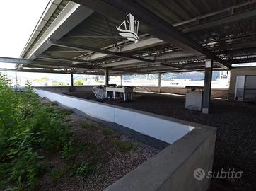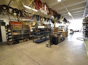Il capannone dispone di una vasta area produttiva, al piano terreno, dotata di carro ponte, di una cabina di verniciatura attrezzata e di ampi portoni sul piazzale esterno, parzialmente coperto da tettoie.