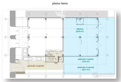 piano terra: 743 m² (officina, anti-wc, wc: 360 m²; piazzale coperto: 162 m²; piazzale scoperto: 221 m²)