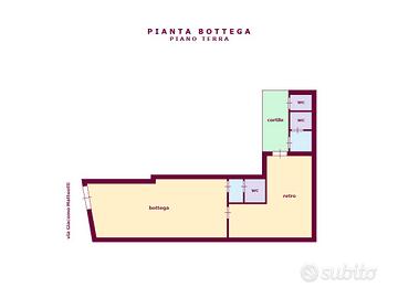 Avente una superficie coperta di circa 70 m², la bottega dispone di una luce prospiciente la via principale ed è attualmente composta da un primo locale adibito alla vendita, un secondo locale retrobottega/laboratorio, servizi igienici a servizio dei clienti, spogliatoio e servizi igienici per il personale ed un piccolo spazio esterno.