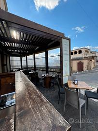 Locale di 50 mq, terrazzino di 30mq sfruttabile anche d' inverno grazie ad un gazebo in corten, tende in pvc elettriche, 3 lampade infrarossi waterproof IP 65 della Vortice riscaldanti automatiche (anche il tetto é apribile elettricamente), antibagno e doppio bagno, magazzino di circa 15 mq.