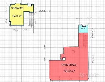 L'immobile è composto da due locali, distribuiti su 2 livelli Piano terra (h 5,80) e soppalco (h 3,00) perfetti per ospitare un'attività commerciale di vario genere.