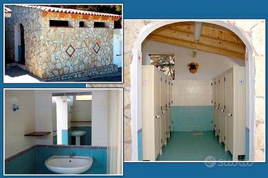 6 mini appartamenti per un totale di 250 mq, 1 appartamento su due livelli di circa 80 mq . Un'area bar/reception accogliente e funzionale. Due gruppi di docce/bagni moderni e ben attrezzati. 80 postazioni per camper, tende e roulotte. Un anfiteatro da 500 posti perfetto per organizzare eventi e spettacoli. Porticati e zone alberate dove godersi l'ombra e la frescura durante le giornate più calde. L'accesso diretto a una spiaggia ad uso esclusivo con acque cristalline, ideale per nuotare, prendere il sole e praticare sport acquatici.