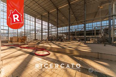 con un'altezza interna di 14 metri pensato in particolare per uso alimentare grazie alla presenza di pavimentazione lavabile e di appositi canali per lo scolo dell'acqua. Il capannone include 7.000mq di piazzale scoperto. Inoltre, adiacenti al capannone sono presenti locali in cemento completamente chiusi dalla forma allungata come tettoie per un totale 1.400 mq disponibili anch'essi per un eventuale affitto separato.