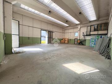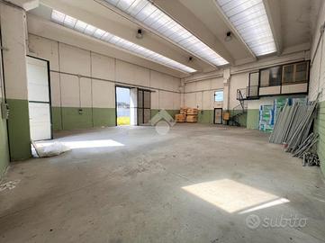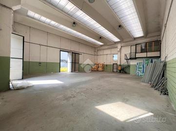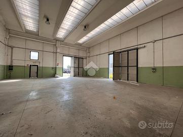 La soluzione, a pianta rettangolare, è composta da un'ampia zona lavorativa accessibile da due portoni e due accessi pedonali.