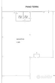L'immobile è composto da due locali, con una piccola zona uffici già presente, e dispone di un comodo accesso carrabile e un portone industriale di 4 metri per lato, che garantisce un facile ingresso anche a mezzi di dimensioni medio-grandi.