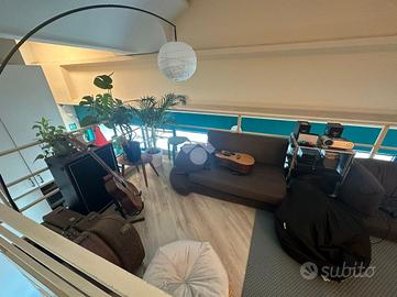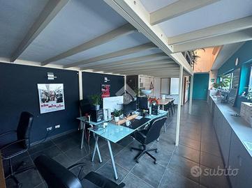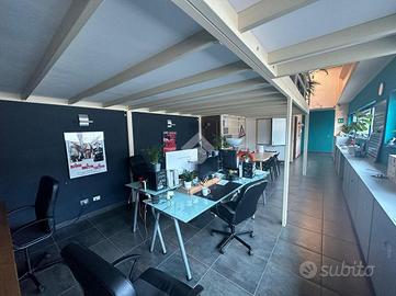 La proprietà comprende un'unica area open space, suddivisa in zona uffici/lavoro, zona lounge e due servizi igienici.