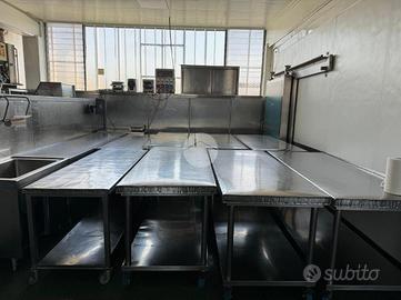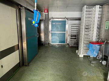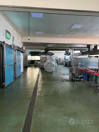 Il primo piano interrato e il piano terra, entrambi di 700 mq ca. sono adibiti alla produzione, cucina e reparto lavaggio.