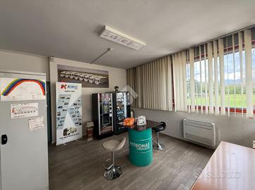 2400mq di capannone (piano rialzato di 1100mq con altezza di circa 5,5m e piano interrato di 1300mq con altezza di circa 5m). Dotato di 2 baie di carico, 1 piano di carico, montacarichi e unico accesso carraio. Per scendere al piano interrato c'è una rampa accessibile per piccoli mezzi.