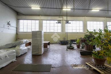 * Al piano terra, accessibile tramite un portone di circa 4,5 metri di altezza, troviamo circa 1.150 metri quadrati di superficie industriale, disposti lungo due campate aventi 7,5 metri di altezza con 6 metri di sotto trave;