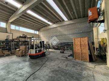 L'accesso alla proprietà avviene dal cancello carraio che delimita un'area di piazzale privato di circa 700mq che circonda il capannone. L'ingresso al capannone avviene sia da porte pedonali che da due portoni carrai. L'area produttiva ha una metratura di 308mq con altezza complessiva di 7.80mt. Oltre all'area produttiva è presente un locale di 57mq che si presta ad attività artigianale o commerciale. A completare la proprietà è presente una sala riunioni di 17mq, un magazzino di 18mq, e i servizi igienici con spogliatoio. La proprietà è dotata di tutta l'impiantistica elettrica, di illuminazione e di riscaldamento con i Robur nella parte produttiva.