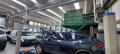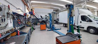 La zona officina, alta 6 metri, si sviluppa per circa 650 mq, oltre a 100 mq circa di soppalco, corpo bagni e spogliatoi.