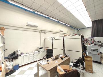 L'immobile è costituito da unico ampio vano ad uso laboratorio con portone carrabile fronte strada con antiporta vetrata, ufficio e bagno e doccia con antibagno, oltre a soppalchi sopra all'ufficio ed ai servizi. Il capannone è pavimentato e controsoffittato, è provvisto di impianti elettrico e di illuminazione, nonché di riscaldamento e condizionamento autonomi, la copertura del tetto e le relative finestre sono state sostituite negli ultimi anni, ed è dotato di agibilità sismica definitiva. Il fabbricato di cui fa parte l'unità immobiliare ha spese accessorie contenute ed è dotato di ampia area cortiliva condominiale recintata, con cancelli carrabili automatici su due strade, buona disponibilità di parcheggio e possibilità di accesso anche con i mezzi pesanti per il carico/scarico delle merci. Il capannone sarà consegnato libero a rogito.