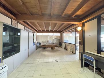 A Castegnato, in zona Outlet Franciacorta, in complesso a schiera di capannoni artigianali fronte Tangenziale, proponiamo in affitto capannone P.T. di circa 280 mq collegato con grande ufficio P.T. di circa 280 mq. L'entrata al complesso avviene da un cancello elettrificato in comune con le altre 3 unità presenti nella schiera; la porzione da locare presenta l'ingresso pedonale sul fronte della Tangenziale nell'ufficio P.T., dove il locatore concede la possibilità di utilizzare in maniera esclusiva n°20 posti auto e/o camion come parcheggio o esposizione. Internamente gli uffici sono disposti in 5 locali distinti, con possibilità di utilizzare l'attuale arredo, con doppio servizio igienico di cui 1 con doccia. Sono presenti due condizionatori caldo/freddo per tutti gli ambienti; gli uffici sono interamente cablati, con luci, allarme ed impianto di telecamere. Il capannone, che è posto lateralmente alla zona uffici ed internamente collegati da una porta, misura ulteriori 280 mq con altezza sottotrave di 5,26 m e il portone carraio è posto sul retro della soluzione e misura 3,97 m di larghezza e 4,44 l'altezza. Anche sul retro dello stabile e per la porzione di competenza, è possibile l'utilizzo e l'occupazione di parte del piazzale per parcheggio, deposito esterno o carico/scarico merci. Gli impianti elettrico, idraulico e luci sono funzionanti; non è funzionante il riscaldamento ed i servizi sono presenti solo all'interno degli uffici; è presente altresì l'impianto d'allarme e di videosorveglianza. Ideale per attività che necessitano di alta visibilità in quanto posizionato sul fronte della tangenziale che collega Brescia al Lago D'Iseo, con possibilità di installare un'insegna visibile dalla stessa.