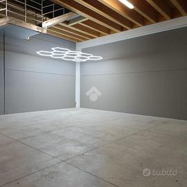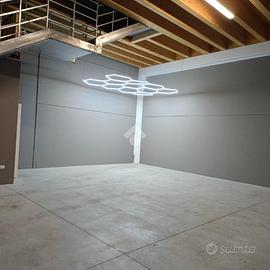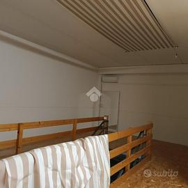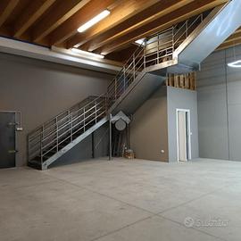 il capannone e' su base rettangolare disposto su due piani speculari di 110 mq l'uno entrambi dotati di servizi igienici con antibagno.