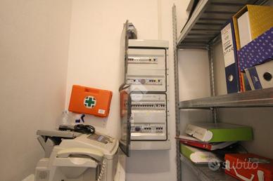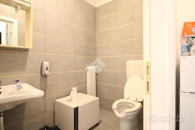 Il locale è disposto su pianta rettangolare con due ingressi l'ingresso posteriore è su area di carico e scarico e parcheggi condominiali.